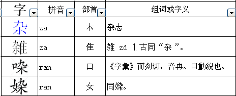杂的拼音和组词部首