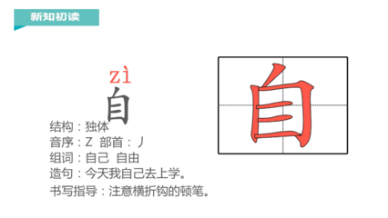2、以自开头组词如下:自立、自然、自习、自许、自量、自画、自从、自己、自由、自信、自觉、自豪、自卫、自恃、自诩、自嘲、自序、自控、自相、自满、自缢、自傲、基本字义:本人,己身:~己。~家。~身。~白。