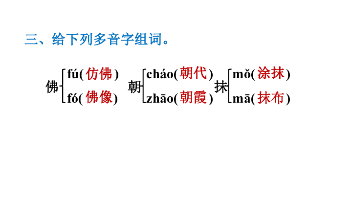 仿佛[fǎng fú]似乎;好像。佛桑[fú sāng]即扶桑。植物名。指佛桑树或它的花。佛戾[fú lì]违背;违反。佛教[fó jiào]也叫释教。世界三 大宗教之一。相传公元前6—前5世纪时由释迦牟尼所创立。