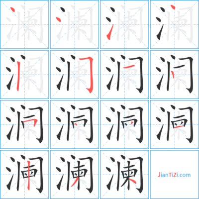 5、组词:澜倒,澜倒波随,澜文,澜斑,澜_,澜汗,澜沧江,澜波,澜浪,澜清,澜漫,澜澜,澜澳,澜熳,澜翻,澜贱,澜_、澜澳,泛澜,溃澜,推波助澜,纵风止燎。造句:一张老照片激起了她感情的波澜。