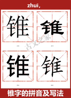 1、锥 拼 音 zhuī 基本释义 一头尖锐,可以扎窟窿的工具:~子。针~。~处囊中(锥子放在口袋里,锥尖就会露出来。喻有才智的人终能显露头角)。~刀之末(喻微小的利益。亦作“锥刀之利”)。