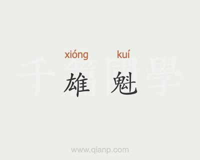 魁 拼 音 kuí 部 首 鬼 笔 画 13 五 行 木 繁 体 魁 五 笔 RQCF 生词本 基本释义 详细释义 为首的;居第一位的:~首。罪~。夺~。花~。(身体)高大:~梧。~伟。魁星 姓。