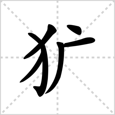 释义:粗野,如粗犷、犷悍。同音字:广、広。偏旁部首:犭。笔画顺序:撇、弯钩、撇、点、横、撇。笔画数:6笔。结构:左右结构。