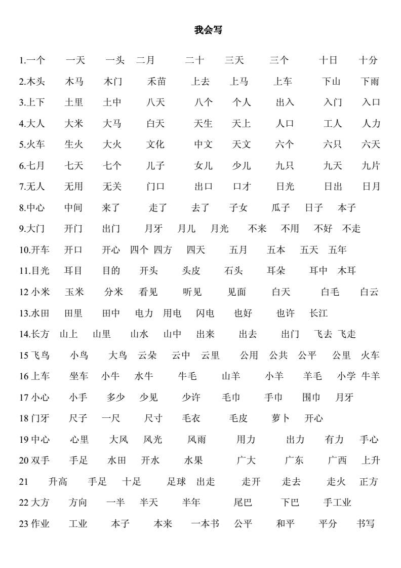 1、组词100个一年级如下:春天、春雨、立春、冬天、冬雪、冬日、立冬、大风、白雪、雪花、雪人、大雪、花鸟、山花、开花、花儿、飞来、飞回、出入、入口、飞入。