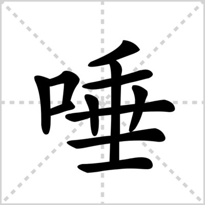 读音:tuò 意思:唾液。用力吐唾沫。吐唾沫表示鄙视。笔画顺序:竖、横折、横、撇、横、竖、横、竖、竖、横、横。