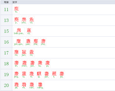 4、鹿是常见意符,以“鹿”为意符的字大部分是鹿类动物的名称,如麋、麂、麝、麟等。