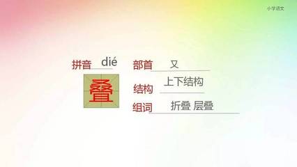 3、叠[dié]:一层加上一层;重复;折叠(衣被、纸张等);姓。
