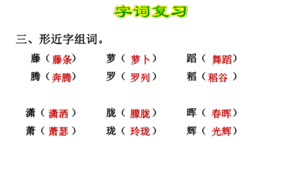 3、可以组成萝卜,女萝,绿萝,菠萝,萝莉等词语 萝luó:通常指某些能爬蔓的植物 萝卜:别名莱菔、菜头,十字花科草本植物。女萝:地衣类植物,全体为无数细枝,状如线,长数尺,靠依附他物生长。