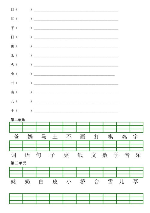 组词(一年级上册)如下:1.人:人口、大人、外人、人生、人马、女人、人们、工人、他人。2.个:个人、一个、个位、个头。3.大:大风、大人、大叫、大豆、大手、大小、大门、大水。