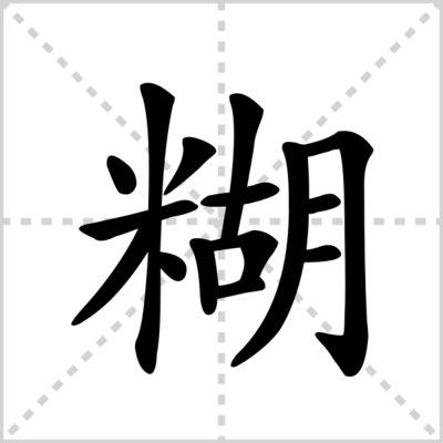 部首: 米,具体解释如下:[ hú ]用黏性物把纸、布等粘起来或粘在别的器物上:~信封。~墙。~顶棚。~风筝。同“煳”。粥类食品。