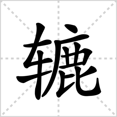 1、◎ 〔轱~〕见“轱”。◎ 辘 】辘 lù 〈名〉(1) (形声。从车,鹿声。本义:纺车。)(2) 车轮辗轧 [roll]。如:辘轴(石做的圆柱形农具,两端有洞,加轴,外加框,用牲口拉着打场、平场);辘轴退皮(碌碡脱皮。