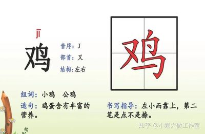 5、相关组词:公鸡[gōng jī]家禽,品种很多,翅膀短,不能高飞;啼能报晓。雏鸡[chú jī]刚初生不久的小鸡。白斩鸡[bái zhǎn jī]白斩鸡 báizhǎnjī 白切鸡,鸡肉白水煮熟蘸佐料食用的一种菜肴。