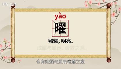 2、读音:[ yào ]解释: 照耀;明亮 :“日出有~”。