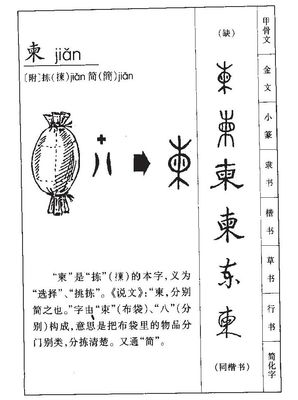 2、拣选 挑拣 拾拣 选拣 分拣 挑肥拣瘦 挑三拣四 拣佛烧香 挑精拣肥 拣精择肥 拣 jiǎn 挑选:挑~。~择。~选。挑肥~瘦。 同“捡”。