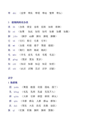 3、一组词:一同、一共、一定、一些、一直。二组词:第封二战、二毛、二流。三组词:再三峡、三昧、三节、三副。四组词:四周、四射、四肢、四方、四起。五组词:五官、五脏、五绝、五音、五律。