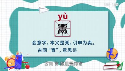 是多音字。读音:[yù] [yō]部首:月五笔:YCEF 释义:[yù]:生育。 养活。 教育。 姓。 [yō]:见〖杭育〗。