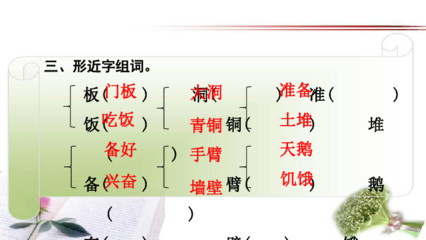 3、堆组词:一堆 堆积 堆放 扎堆 堆叠 堆砌 草堆 堆垛 堆积如山 堆金积玉 花堆锦簇 堆例句:(1) 悬崖上那一堆堆给秋霜染得红艳艳的小草,简直像是满山杜鹃了。(2) 海浪激起的泡沫像一堆堆白雪,美极了。(3) 秋雨打着她们的脸。一堆堆深灰色的迷云,低低地压着大地。