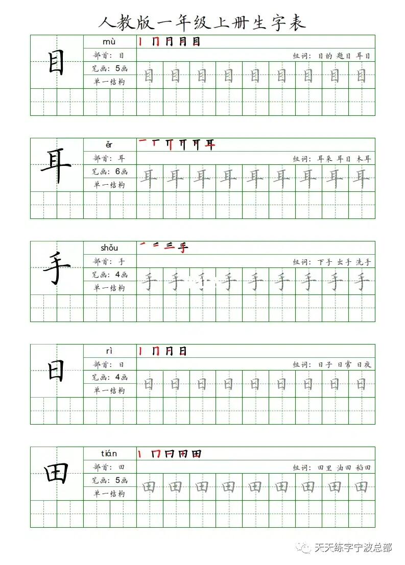 3、“目”字组词有:耳目、条目、头目、目送、目的、题目、曲目、科目、夺目、眉目、目睹、瞩目、篇目、戏目、凝目、醒目、怒目、词目、瞠目、目验、目论、韵目、细目、目下、刮目、栏目、反目、盲目、举目、极目、目力、价目、子目、目标、数目、目击、品目、悦目、剧目、目镜 等。