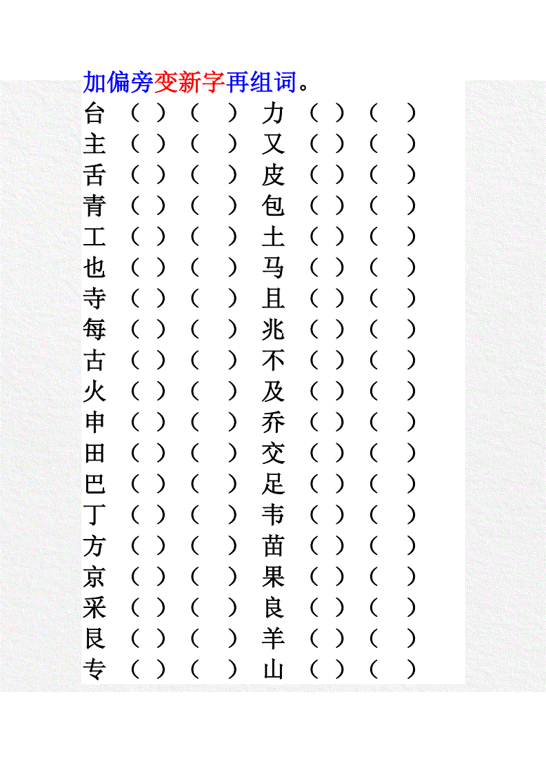 3、正加双人旁,征(征途)。正加言字旁,证(证据)。正加反文旁,政(政治)。正加病字旁,(症状)。