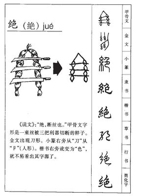 2、释义 断:~种。~缘。~嗣。~情。~迹。断~。杜~。灭~。空前~后。尽,穷尽:~命。~望。~境。~棋。气~。极,极端的:~妙。~密。~壁。~无仅有。独特的,少有的,没有人能赶上的:~色。~技。~伦。~唱。~代。一定的,肯定的:~对。~然。