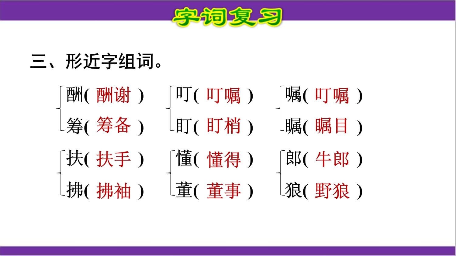 4、千叮万嘱[qiān dīng wàn zhǔ] 反复地叮咛、嘱咐。也作“千叮咛,万嘱咐”。遗嘱[yí zhǔ] 人在生前或临死时留给后人的书面或口头的嘱咐。嘱托[zhǔ tuō] 叮嘱;托付:受了人家的嘱托,就要把事情办好。