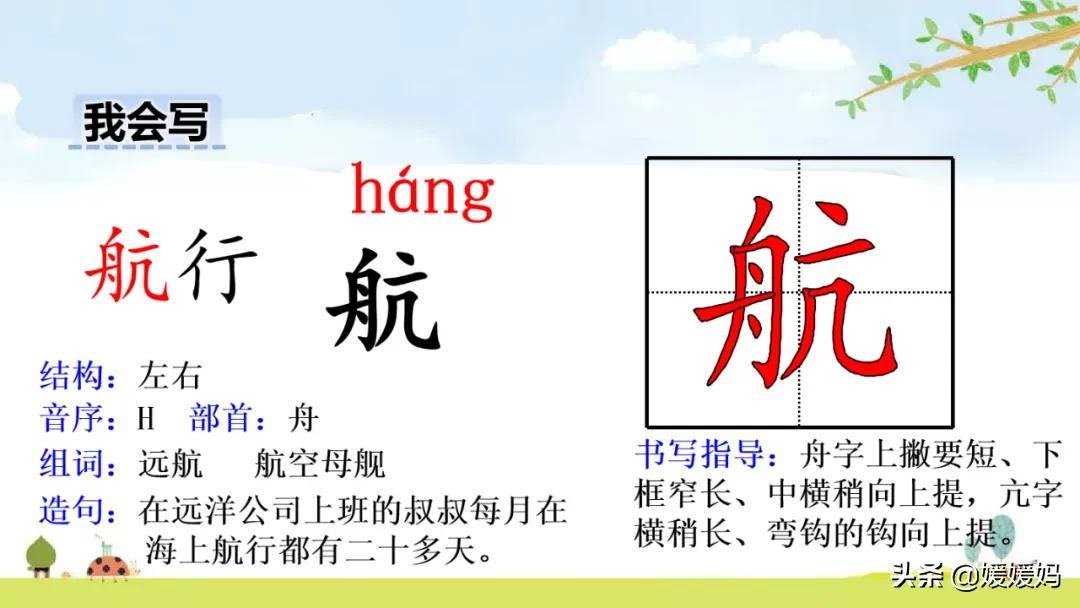 3、航的组词有航标、航程、航船、航次、航道、航海、航空、航空兵、航空病、航空母舰、航空摄影、航空手表、航空信、航空植保、航路、航模、航天、航天飞机、航务、航线、航海梯山、梯山航海、栈山航海等等。