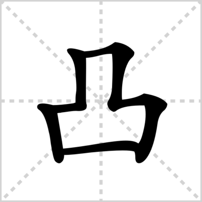 凸(竖、横、竖、横折折折、横)tū ㄊㄨˉ高出周围,与“凹”相对:~出。~起。~透镜。~凹不平。笔画数:5,部首:凵,笔顺编号:21251 凹(竖、横折折、竖、横折、横)wā ㄨㄚˉ同“洼”(用于地名):核桃~(在中国山西省)。