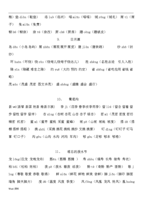 5、碧落[bì luò]:道家认为东方最高的天有碧霞遍布,故称为「碧落」。后用以指天空。造句:伤别离,地角天涯;动愁吟,碧落黄泉。索落[suǒ luò]:要求、找麻烦。造句:你这狗才,头里嗔他唱,这回又索落他。段落[duàn luò]:根据文章或事情的内容、阶段划分的相对独立的部分。