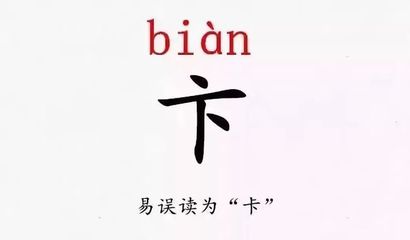 4、卞: biàn (变的读音) 卞急 急躁的意思 出处:《左传.定公三年》:“庄公卞急而好洁。