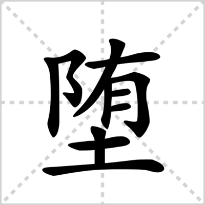 4、■ 堕组词 堕落、堕胎、堕地、堕坠、堕指、堕业、堕懈、飘堕。,含堕的成语 ■ 拼音、笔画、部首 堕(堕),堕拼音:duò、huī,笔画数:11画,部首:土。■ 基本释义 掉下来,坠落:堕落。堕地。堕马。堕胎。堕甑不顾(喻对已经过去的事,不作无益的惋惜)。
