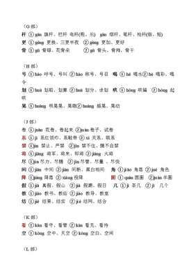 4、骨 读音:[gǔ] [gū]组词:gǔ 骨鲠gǔgěng 〖Fishbone〗∶鱼骨头 骨鲠在喉 gǔgěng-zàihóu 〖Have a fish bone caught in ones throat〗鱼骨头卡在喉咙里,比喻心里有话没说出来,堵得难受 这些话闷在心里多日了,如骨鲠在喉,不吐不快。gū 骨朵儿(gūduor)尚未开放的花朵。