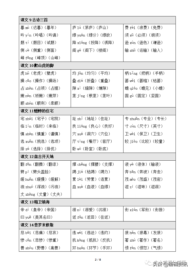 侧门、侧重)峰 (峰峦、山峰、顶峰)庐(庐山、庐舍、草庐)缘 (缘由、缘故、姻缘)降(降伏、归降、降龙伏虎)阁(阁下、阁子、阁楼)费 (费事、费解、费时)须 (必须、须知、须要)逊 (逊色、逊位、谦逊)输 (输血、输入、运输)。