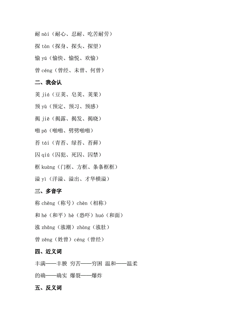 2、延:形近字:诞,蜒。组词:圣诞,蜿蜒。奄:形近字:掩,淹,俺。组词:掩埋,淹没,俺们。彦:形近字:颜,谚。组词:颜色,谚语。央:形近字:秧,映,殃。组词:秧苗,倒映,遭殃。夭:形近字:袄 ,沃,跃,妖。组词:棉袄,肥沃,跳跃,妖怪。