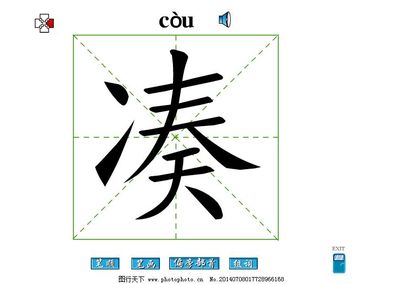 3、凑的拼音为còu,组词如下:凑近:亦作“凑近”。靠近。夏丏尊叶圣陶《文心》二十三;“随后大文也来了,凑近她坐下。”凑合:聚集;亦作“凑合”。聚集。《朱子语类》卷三十六;“恐人说物自物,道自道,所以指物以见道,其实这许多物事凑合起来,便都是道之体。