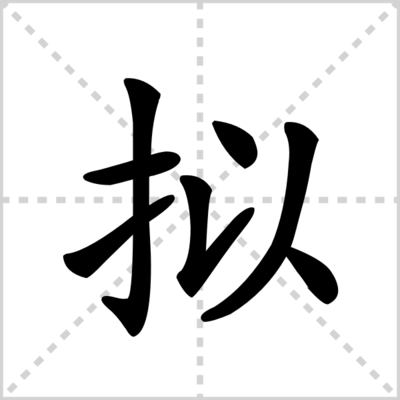 拟的组词:比拟、拟程、俦拟、拟待、拟抵、敌拟、拟订、拟定、供拟、拟捍、拟话本、僭拟、拟寇、拟鲤属、伦拟、满拟、拟貌、摸拟、拟的笔顺是横、竖钩、提、竖提、点、撇、点。