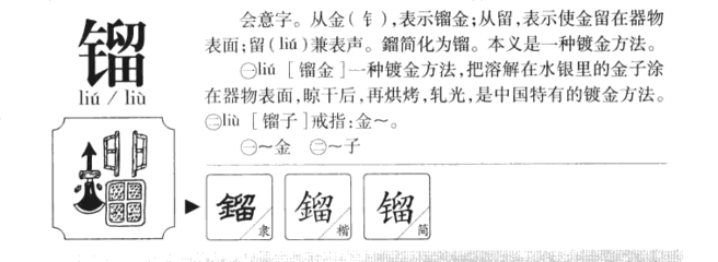 留部首:田 [拼音] [liú][释义] 停止在某一个地方。 注意力放在上面。 不忍舍弃,不忍离去。 不使离开。 接受。 保存。