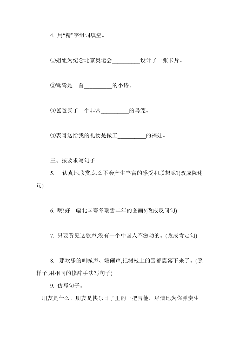 用精字组词然后填空,三句