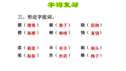6、猴组词 :猴子、金丝猴、猕猴桃、猕猴、懒猴、皮猴儿、猴儿精、猴戏、耍猴儿、叶猴、猴梅、供奉猴、猴弈、皮猴、猕猴梨、沐猴冠、婴猴、楚猴、猕猴池、猴刺脱、宰鸡教猴、猴玃、猴头猴脑、狝猴江、猴年马月、麻猴子、猫猴子、皮猴子、马猴、瘦猴儿。