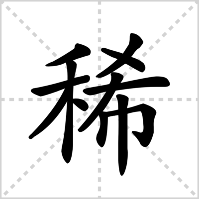 稀 拼音xī 笔画12 画部首禾 部外笔画7画 字形左右五行木 近义字疏少 反义字密稠浓 异体字希 从禾,希声』,指该字为形声字 ,【禾】为形旁,【希】为声旁。【稀】字《说文解字》读音解析:『希声』,即形声字中【希】是声旁,一般为上古造字时读音。反切注音:『香依』切。