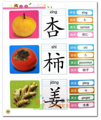 4、柿:柿子,柿饼 拼音:shì 解释:落叶乔木,果实为扁圆形或圆椎形浆果,黄或橙红色,可食:~子。~饼。~霜。