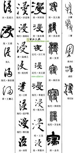 4、渐浸、浸入、溉浸、浸涵、浸淬、漫浸、渍浸、浸溢、浸毓、浸育、溷浸、浸溜。浸寻、湛浸、喷浸、浸潦、涵浸、积浸、浸行、浸凌、稽浸、浸熏、浸酒、停浸、浸廪、渰浸、浸荡、浸浔、浸渗、渊浸、浸洽、阴浸、酸浸、浸溉、惊浸、熏浸、浸益、浸蠹、浸槽、浸想、浸渔、肤浸。