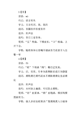 4、我组词如下:忘我[wàng wǒ] (动)忘掉个人利益;忘掉自身;不顾惜自己。我家[wǒ jiā] 自称词。我们[wǒ men] (代)称包括自己在内的若干人。你追我赶[nǐ zhuī wǒ gǎn] 形容竞争激烈,大家都不甘落后。自我吹嘘[zì wǒ chuī xū] 比喻自我吹嘘、夸张。