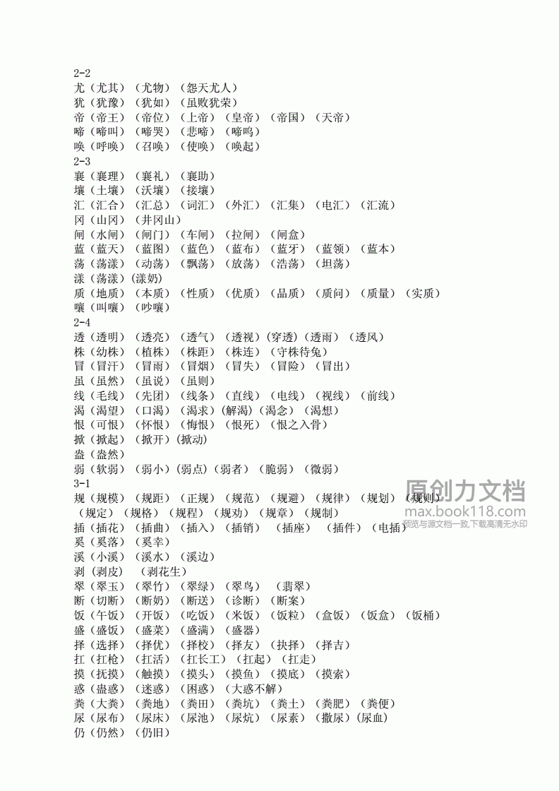 两(两个) (两天) (两月)、就 (就是) (就要)(成就)、哪(哪个)(哪天)(哪里)、宽(宽广)(宽大)(宽阔)、顶(头顶) (顶着) (山顶)、肚(肚子) (肚皮) (肚脐)、皮(皮毛) (皮包) (皮球)、孩(孩子) (男孩) (女孩)、跳(跳高) (跳远) (跳绳)。植物妈妈有办法。
