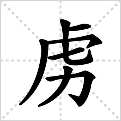 2、虏的笔顺详解 虏字笔画写法 “虏”的解释 虏 拼音:[lǔ](1)俘获。【组词】:虏获。俘虏。(a.打仗时捉住敌人;b.打仗时捉住的敌人)。(2)俘获的人。(3)中国古代对北方外族的贬称。“虏”的文言文解释 (1)动俘获。《鸿门宴》:“不者,若属皆且为所虏。”动把人抢走。