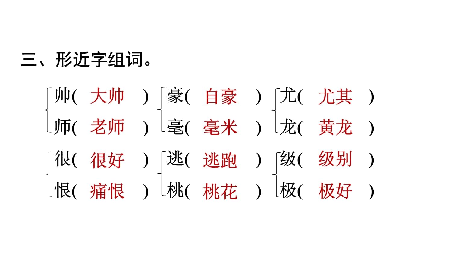 2、尤物 [yóu wù]指优异的人或物品(多指美女)。尤其 [yóu qí]副词。更加;特别。表示在同类事物中突出强调某一种。以儆效尤 [yǐ jǐng xiào yóu]严肃处理一件事,用来警醒那些仿效做坏事的人。儆(jǐng):使人警醒,不犯错误。效:仿效。尤:过失。