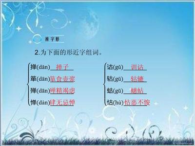 3、掸(dǎn)的拼音意思是用拂尘或其他物品抽打或抖动物体的意思。掸的主要用法是指清扫或打扫,可以用来打扫地面、家具、衣物、车辆等。此外,掸还可以引申为抽打或批评,用于形容人的行为。妈妈用拂尘掸地板,让房间变得干净整洁。昨天我帮爷爷把车子掸了一遍,让车子变得闪闪发光。