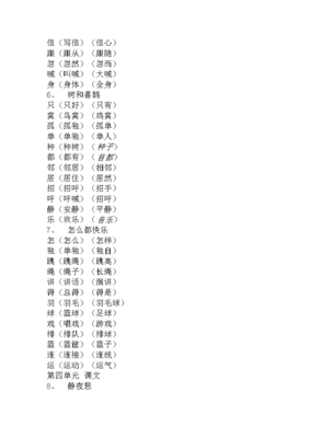 4、一年级上册语文组词大全如下:《金木水火土》:yī一(一个)、(一人)、(一只)。èr 二(二手)、(二月)、(二人)。sān三(三天)、(三个)、(三年)。shànɡ上(上下)、(上车)、(上山)。《口耳目》:kǒu口(人口)、(出口)、(门口)。