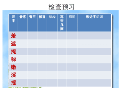 5、溪组词:小溪、溪流、溪水等;部首:三点水;拼音:【xī】。溪流:是相对上比河流窄,水流速度变化多端的自然淡水水流。一般来说窄于五米的水流被称为溪流,宽于五米的被称为河流。通常溪流都是在河流的上游,和山谷一带,湍流和不平坦的河床亦较常见到。溪水:山间的小股水流。