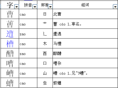 曹字加偏旁组成新字再组词