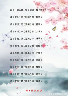 4、副的拼音是f,组词语有一副眼镜、副手、副业等,部首是刂。副是一个多义词,根据不同的语境和搭配,可以表示不同的意思。